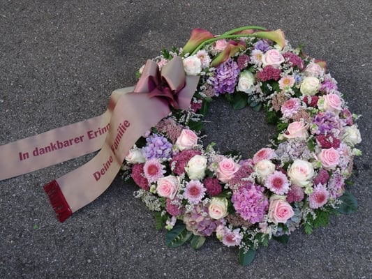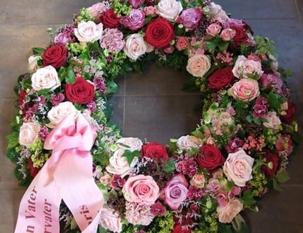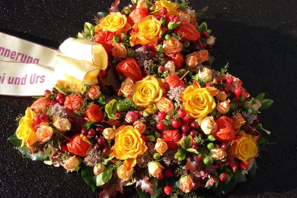 Traditionen helfen, mit schwierigen Situationen umzugehen. So sind Blumenkränze, die mit dem geschlossenen Kreis das Leben, das Vergehen und den Neuanfang symbolisieren, Blumenherze, schön gestaltete gepflanzte Schalen auch heute noch Symbole für die Wertschätzung des verstorbenen Menschen und helfen die Trauer auszudrücken. Wir beraten Sie kompetent bei der Auswahl des passenden Blumenschmucks und der Schleifen.